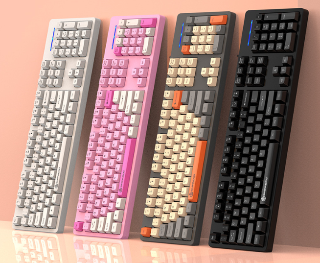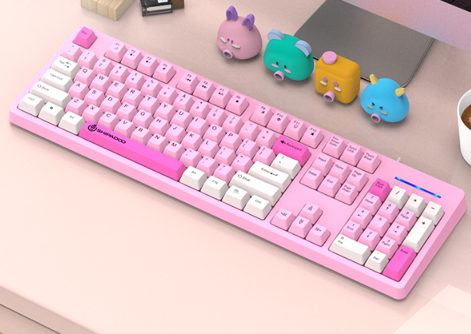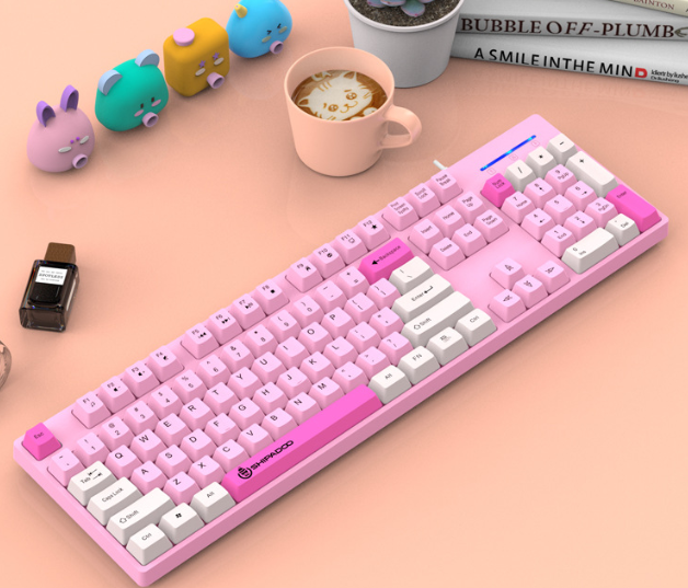 十八渡彩色氛围感键盘 高品质男女生办公台式电脑有线键盘